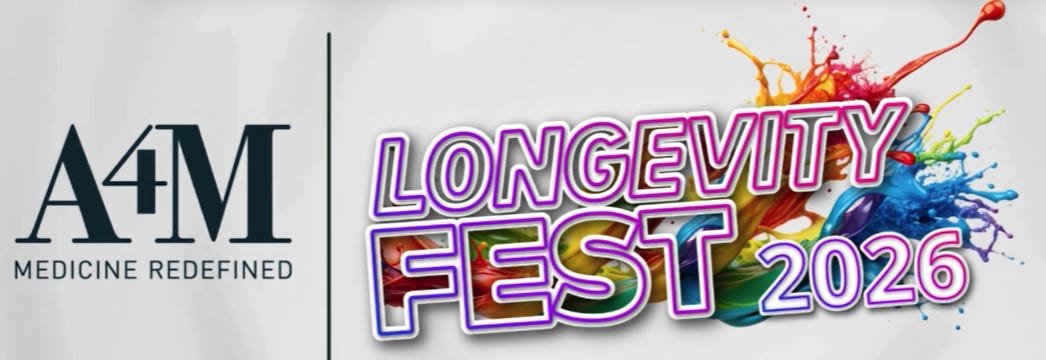 The above article covers Longevity Fest 2025 which was held in December in Las Vegas. The image above is from advertising for the 2026 gathering. The group behind this is the American Academy of Anti-Aging Medicine.